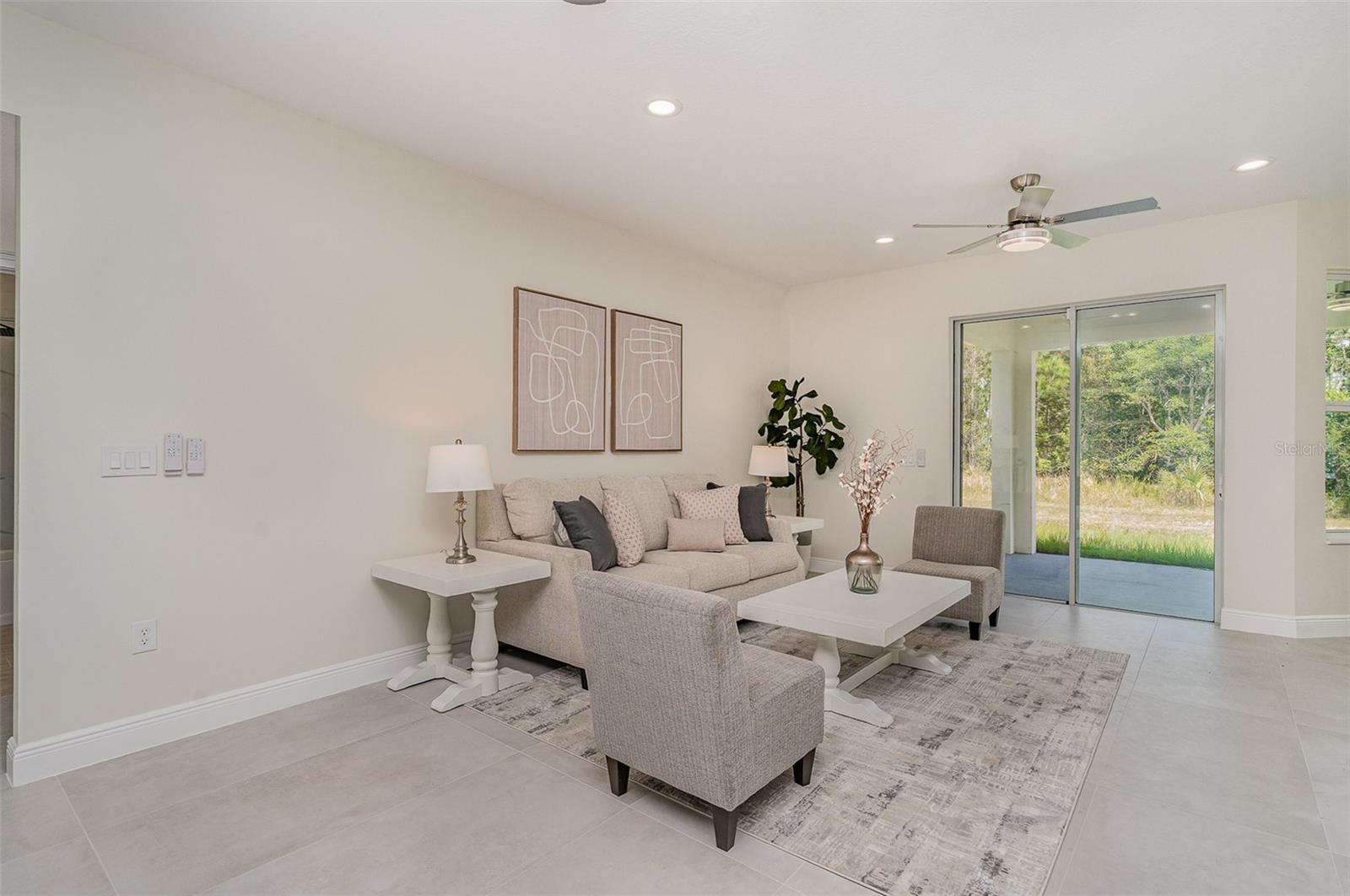 $2,053One or more photo(s) has been virtually staged. Every home has a story, but this one feels like it's been waiting just for you. Positioned on a desirable corner lot, its striking stone façade and inviting entrance create an instant sense of welcome. Step inside and you're surrounded by light and space, with soaring 9.4-foot ceilings and elegant 8-foot doors setting the tone for modern living. At the heart of the home, the kitchen takes center stage a nine-foot quartz island ready for morning coffee, holiday meals, and late-night conversations. Porcelain tile flows seamlessly throughout, leading you to the owner's suite where a spa-inspired bath with a freestanding soaking tub and walk-in shower offers the perfect escape. Quality details are everywhere from the premium water treatment system with reverse osmosis to the epoxy-coated garage floor and freshly painted porches designed for enjoying Florida's warm days. This isn't just a place to live it's where your next chapter begins
